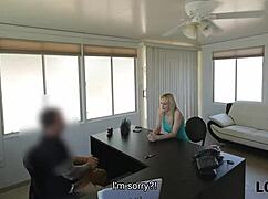 Blonde charmer cheats on husband with money lender during office interview