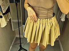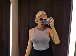 She flashes big tits through see-through clothes in mall changing room spy cam