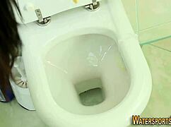 clothed tattooed skank bends over in heels for fetish golden shower doggystyle