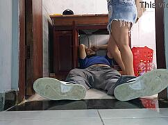 Latina friend surprises with big cock under miniskirt