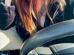 Artemisia Love flashes juicy big tits horny solo car ride
