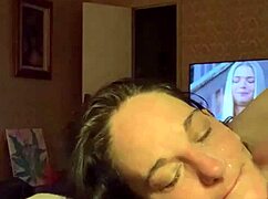 stepmom bites huge cock close up before swallowing massive cum load!