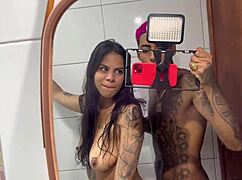 husband films busty brazilian wife showering her curvy wet body