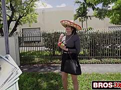brunette latina lured to bang bus bent over for screaming group fuck