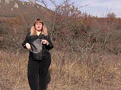 wanna see this mature bbw smoke cigs flashing hairy pussy outdoors?