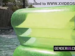 hot tgirls go wild in poolside orgy party