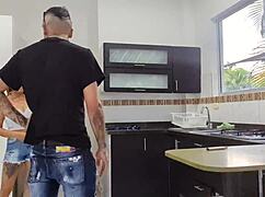 Skinny tattooed colombian housewife finds muscular man fucking her small tits hard!