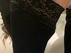 lingeried transsexual with big booty teases her hard cock