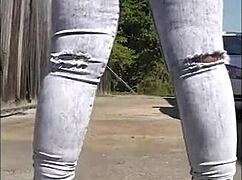 omg, cumming on thighs of nympho girl outdoors!