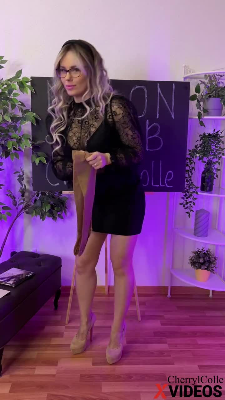 blonde housewife in nylons and heels hints at creamy finish