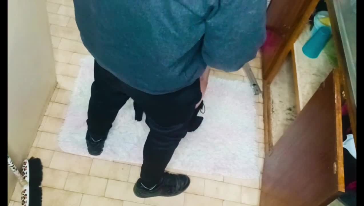 Uncovering the plumber sniffing my underwear for a sneaky handjob.