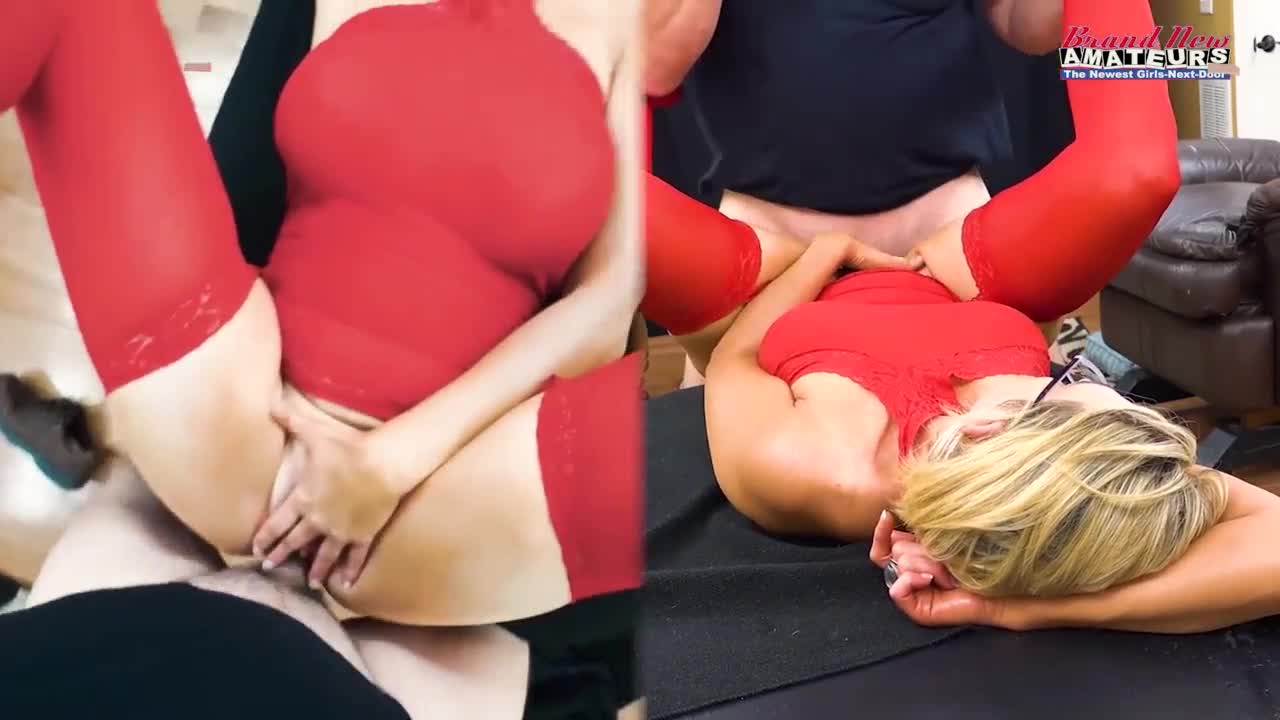 harmony bliss, a horny blonde, takes a big cock deep in shaved pussy