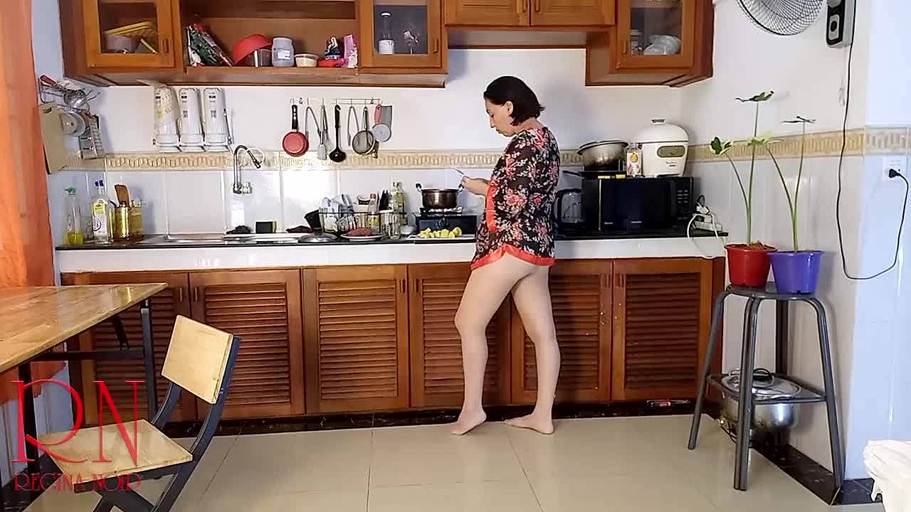 German Housewife Caught Playing Solo in Kitchen