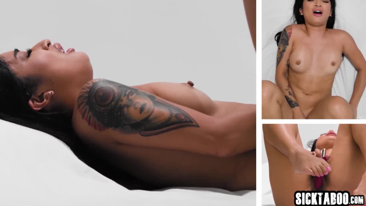 Asian beauty Yuka Ozaki teases her wet pussy with two buzzing toys